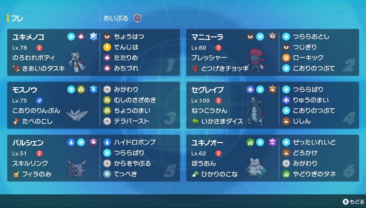 技:ぜったいれいど/どろかけ/みがわり/やどりぎのたね