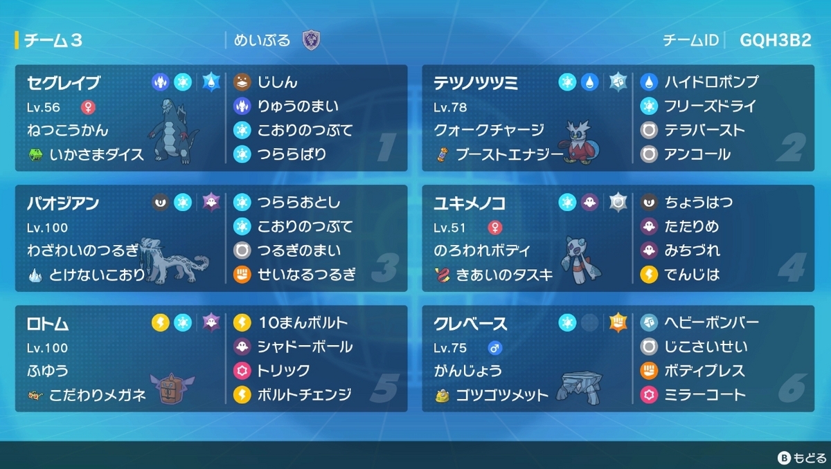 役割:ヘイラッシャ、キョジオ、ウーラオス、テツノツツミ、たまにハバカミ