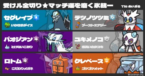 【初めに】 はじめましての方ははじめまして!めいぷると申します。氷統一の民です。 そうでない方は…なんでこいつ記事書いてるんだ?と思っているでしょう。 全くです。 今回は、ポケモンSV ランクマッチにおいて最高レート1948.198という 近年稀にも見ない…